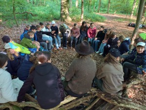 Ob es um das Bauen einer lebendigen Baumskulptur, das Eichhörnchen-Spiel, das Errichten eines Waldsofas oder auch das kritische Besprechen des ökologischen Fußabdrucks geht, die Kinder sind voller Eifer dabei. Als besonderes Anschauungsmaterial stehen noch Tiermodelle zur Verfügung – der Wald bietet alles Weitere und ist ein großartiges Klassenzimmer.