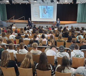 Am 23.05.25 stand Europa im Mittelpunkt des Schullebens am Marie-Curie-Gymnasium. Unter dem Titel „EU & Du – was geht, Europa?“ fand eine spannende Talk-Runde zwischen Herrn Wölfer, Schulpflegschaftsvorsitzender am MCG) und Dr. Stephan Holthoff-Pförtner statt, dem ehemaligen nordrhein-westfälischen Minister für Bundes- und Europaangelegenheiten sowie Internationales. Eingeladen waren alle Schülerinnen und Schüler ab Jahrgangsstufe 7 – und sie kamen zahlreich und vorbereitet. Denn schon im Unterricht hatten sich die Jugendlichen intensiv mit europapolitischen Themen auseinandergesetzt und eigene Fragen entwickelt. Dabei ging es nicht nur um große geopolitische Linien, sondern auch um Alltagsfragen, die Europa ganz konkret betreffen: Warum gibt es keine Plastikstrohhalme mehr? Sollte Deutschland den Taurus-Marschflugkörper an die Ukraine liefern? Wie soll die EU auf den zunehmenden Rechtsruck reagieren? Diese Fragen bildeten die Grundlage für eine lebendige Diskussion, bei der deutlich wurde, wie eng das Leben junger Menschen mit der europäischen Politik verknüpft ist.