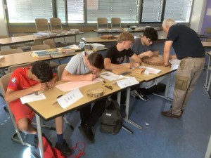 Unter Anleitung von Dr. Hildebrand von Hundt erfuhren die Schüler:innen zunächst, wie sich das Alter von Bäumen anhand ihrer Jahresringe bestimmen lässt. Dabei konnten sie selbst Querschnitte untersuchen und die charakteristischen Muster aus breiten und schmalen Ringen analysieren, die nicht nur Aufschluss über das Alter, sondern auch über Klimabedingungen und Wachstumsphasen geben.
