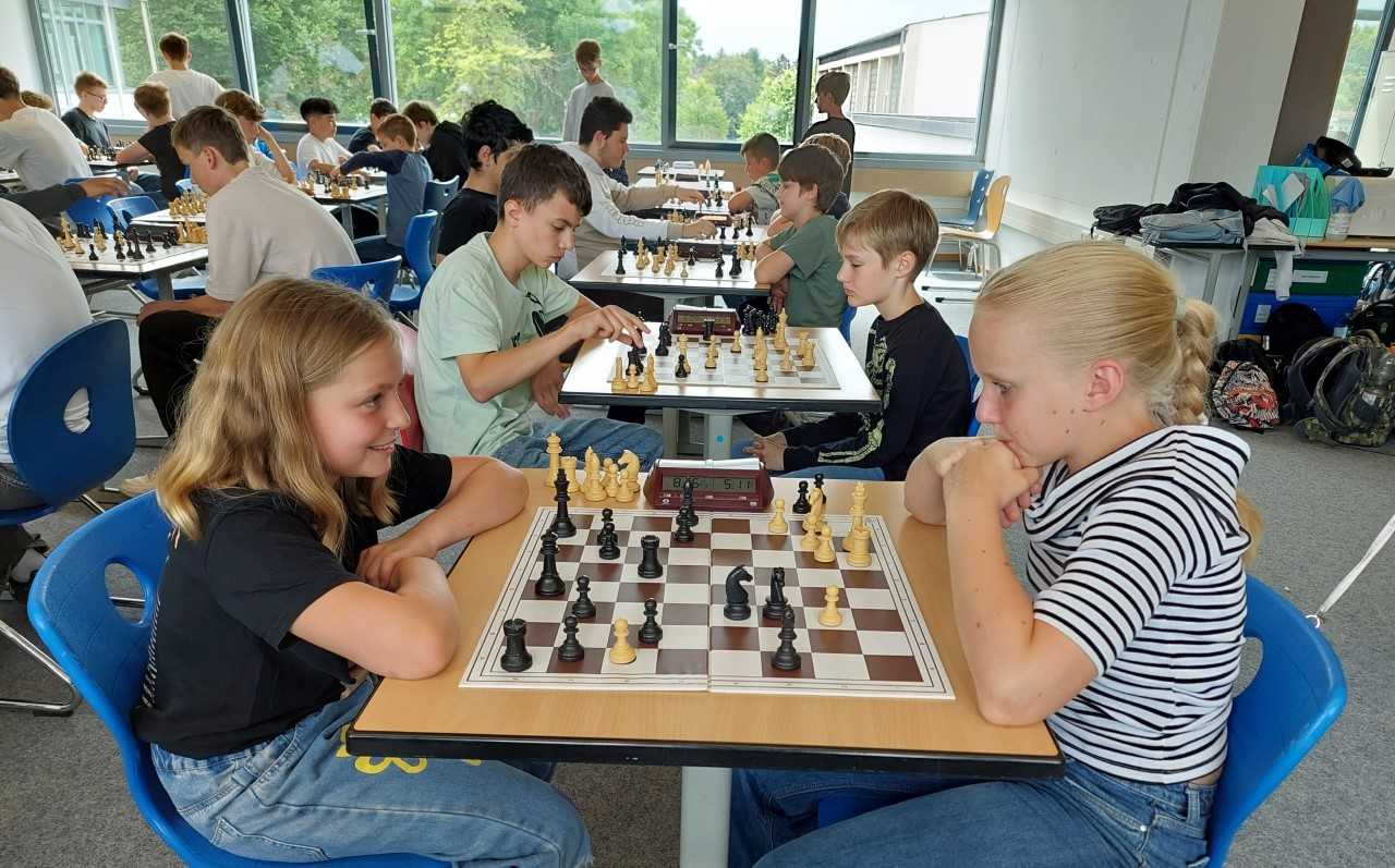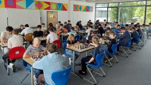 Mit 51 Teilnehmer/innen markierte die diesjährige Schachmeisterschaft des Marie-Curie-Gymnasium unter Leitung von Gernot Medger wieder einen neuen Rekord. Die bisherige Bestmarke stammt mit 48 Schachspielenden aus dem Jahr 2023. Der wieder als Turniersaal fungierende „Mogelpalast“ war damit wieder einmal sehr gut gefüllt.