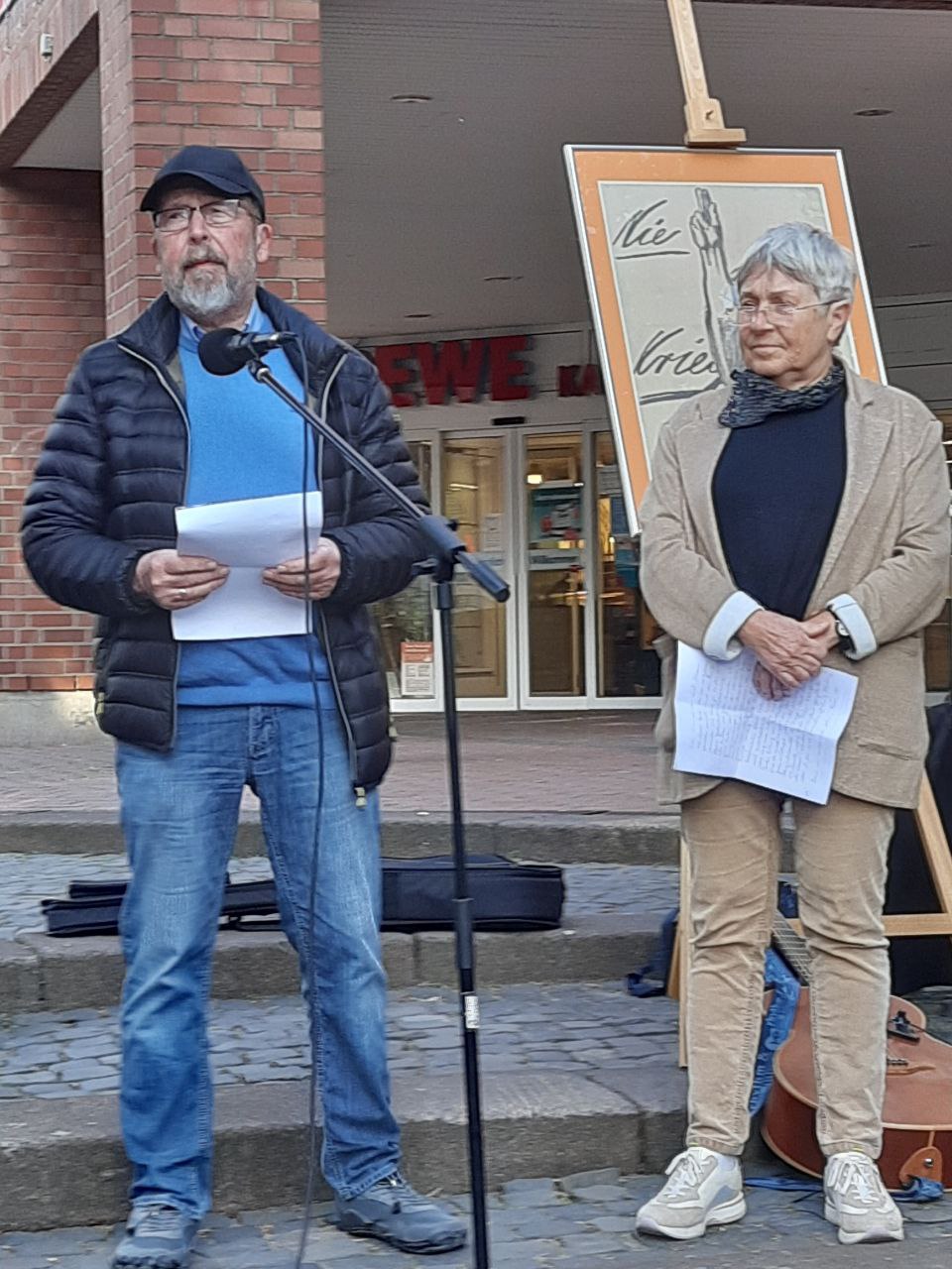 Besonders bewegend war der persönliche Rückblick von Marita Mecklenbrauck, die im Februar 1945 geboren wurde. Sie schilderte lebendig, wie ihre Familie die letzten Kriegswochen erlebte und um das Überleben des Säuglings kämpfte – ein Zeugnis, das den Zuhörenden die Schrecken des Krieges auf persönliche Weise vor Augen führte.