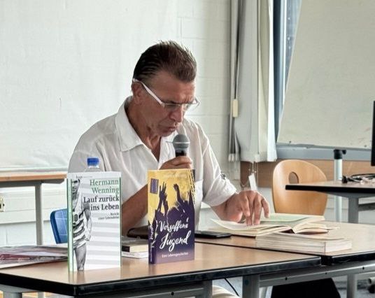 Am 24.06. hatte der 9. Jahrgang des MCG die besondere Gelegenheit, an einer bewegenden Lesung mit dem Autor und Präventionsredner Hermann Wenning teilzunehmen. Der in der Alkohol- und Drogenprävention sehr engagierte und drahtige Sportler und Buchautor berichtete offen und eindrucksvoll von seinem persönlichen Weg in die Drogensucht – und vor allem von seinem schwierigen, aber erfolgreichen Weg aus Sucht, Kriminalität und Gefängnis hinaus in ein neues Leben.